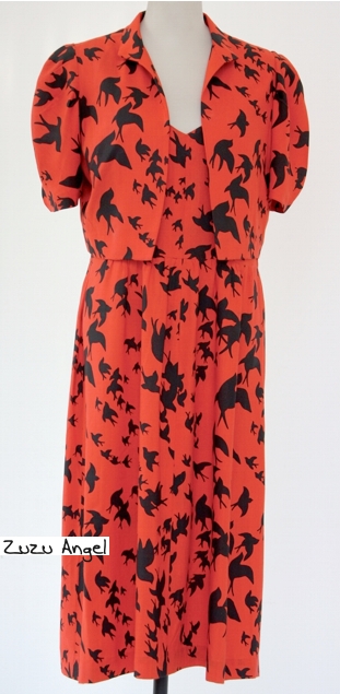 O conjunto de vestido e casaquinho com estampa de andorinhas, de Zuzu Angel, Ú um dosálooksáexpostos no n·cleo "Costureiros"